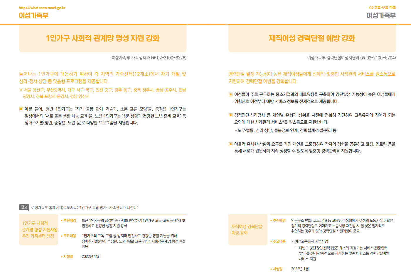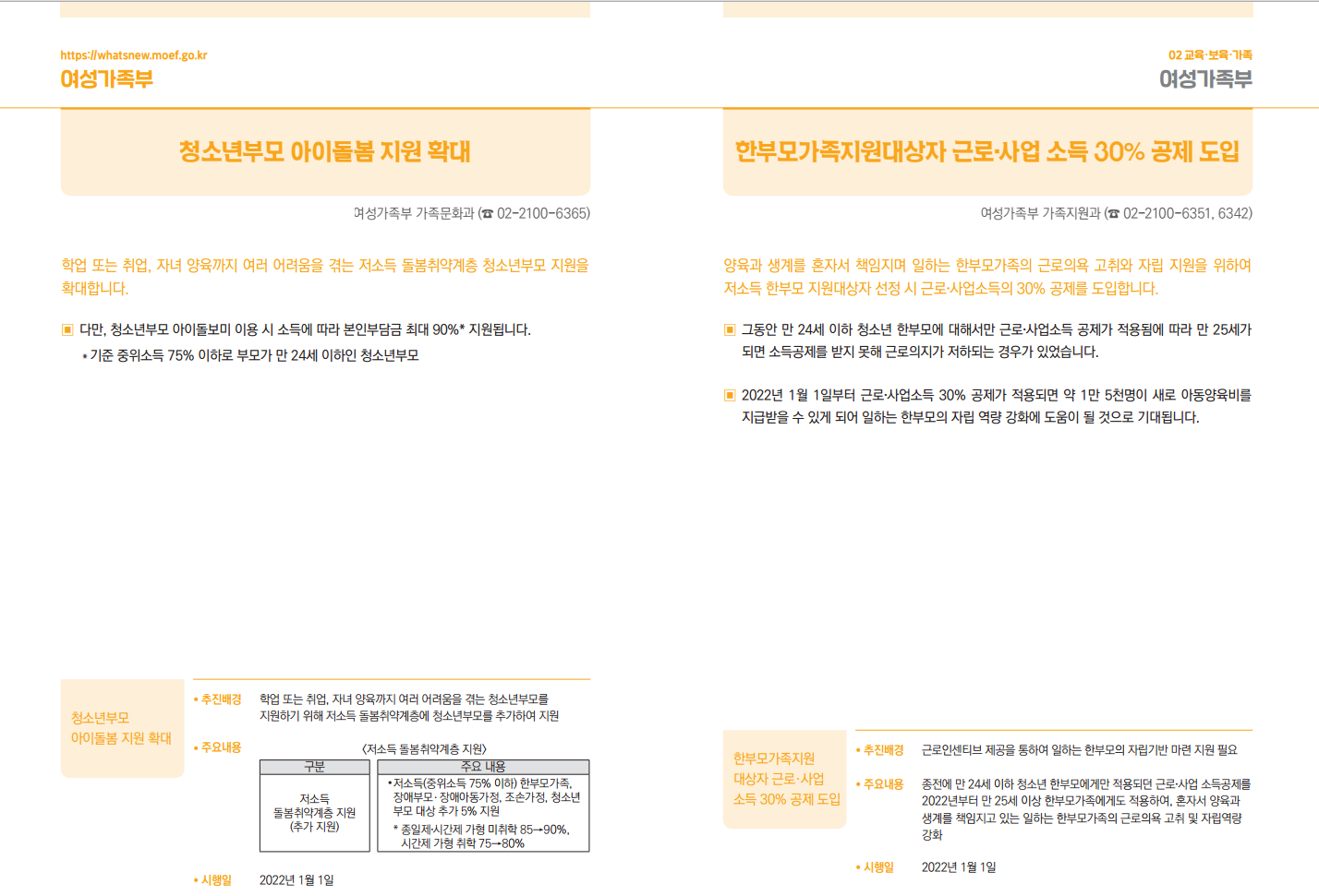 (여성가족부) 2022년 달라지는 주요 제도!
