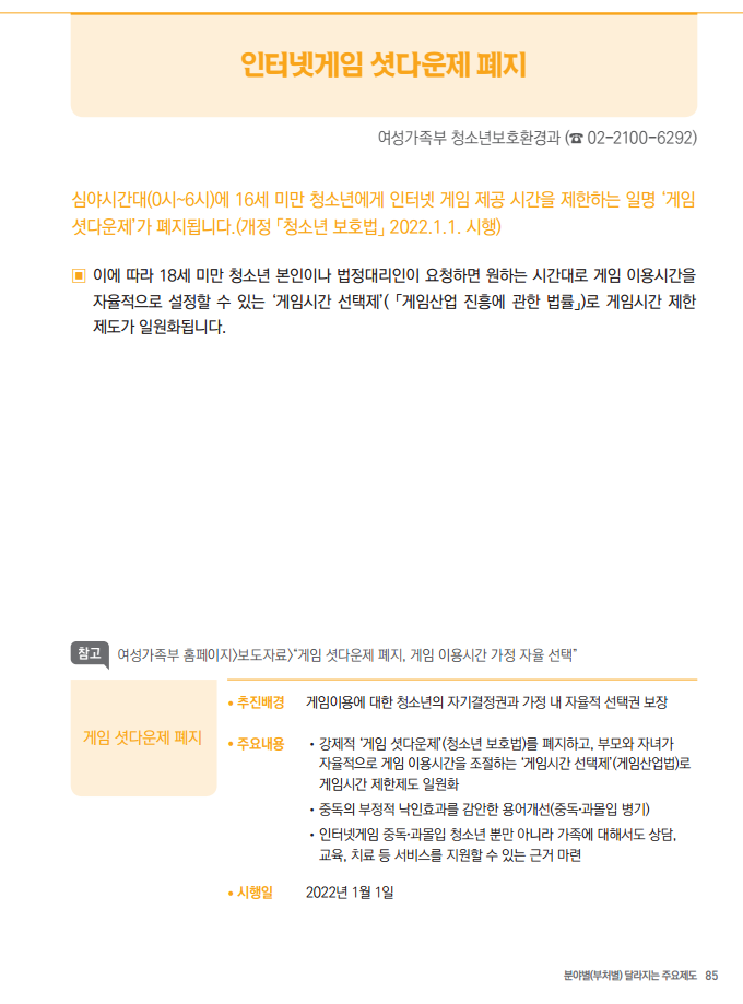 • 인터넷게임 셧다운제 폐지