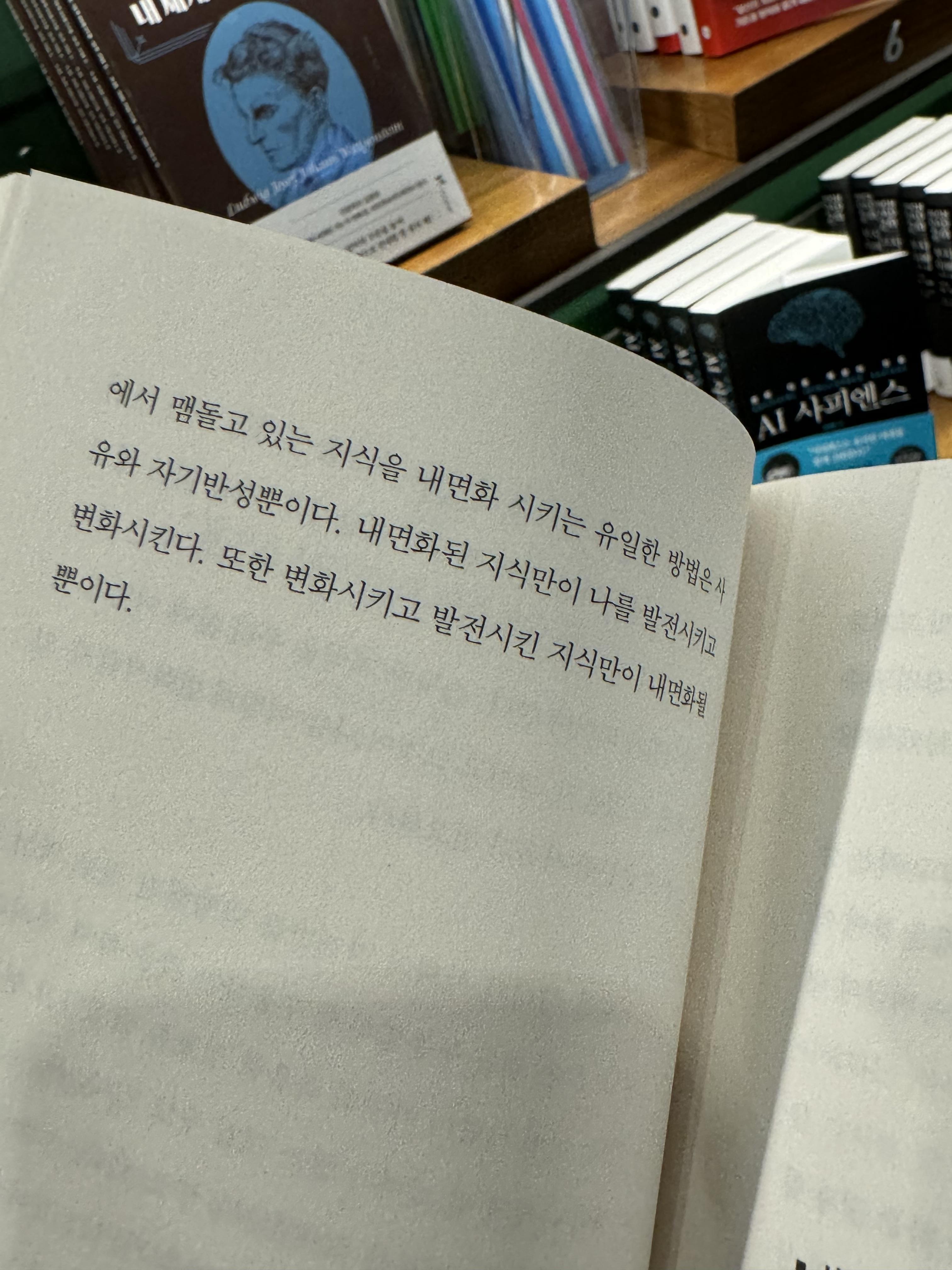 3. 지식을 내면화시키는 유일한 방법은 사유와 자기반성뿐이다. 내면화된 지식만이 나를 발전시키고 변화시킨다. 또한 변화시키고 발전시킨 지식만이 내면화된 뿐이다.
