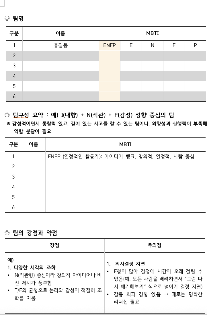 MBTI 조직개발 진행시 활용가능한 보고서 양식